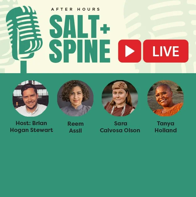 “Join us as we bring cookbooks to life with a live recording of the award-winning Salt + Spine podcast, which features compelling cookbook authors in conversation. For this thought-provoking episode focused on the "State of California Cuisine," host Brian Hogan Stewart will be joined in conversation by three local cookbook authors: Tanya Holland, Reem Assil, and Sara Calvosa Olson. Be part of our live studio audience as we discuss their culinary and cookbook careers, the now-and-future of California cooking, and put our guests to the test in our signature game.”